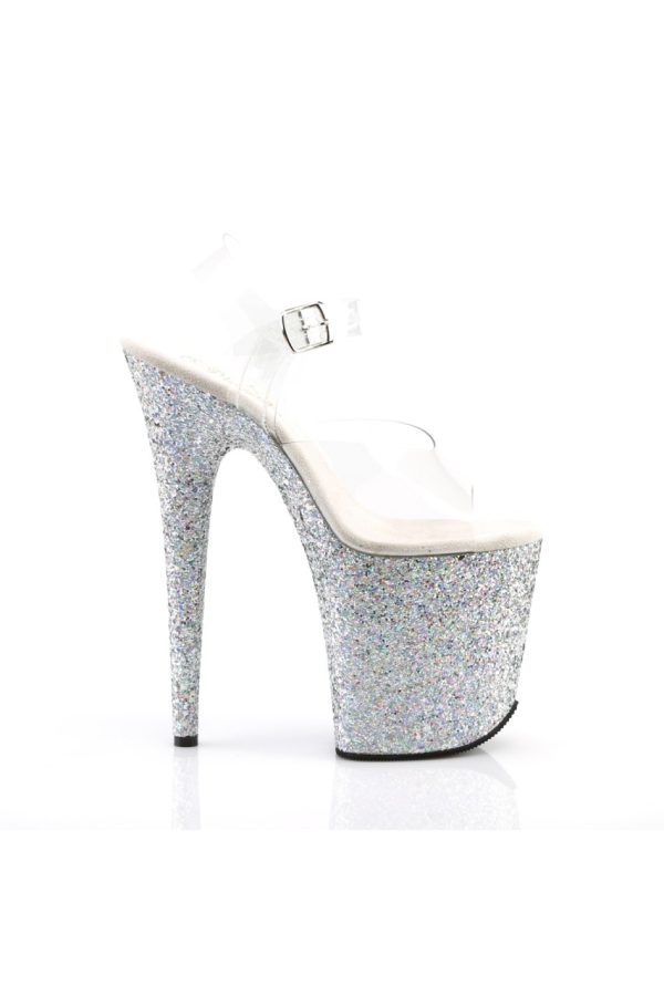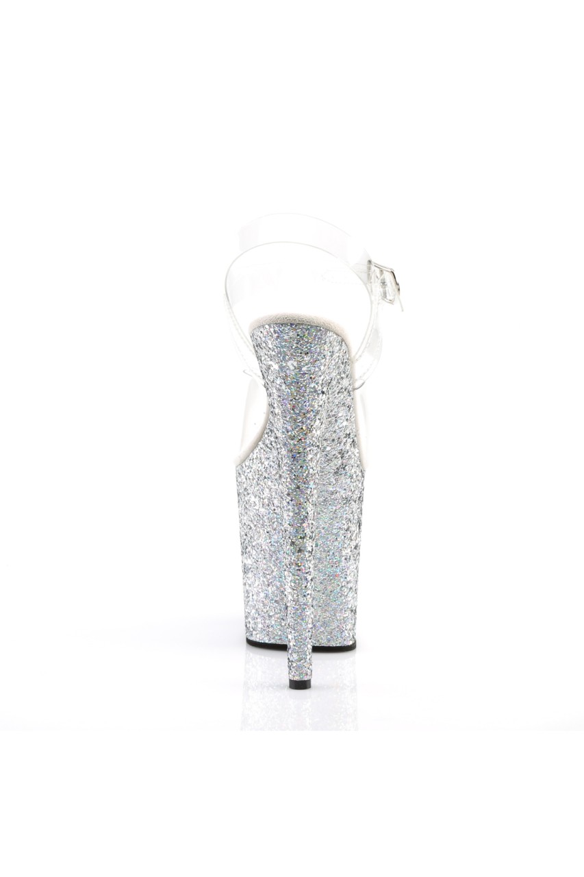 8″” (200mm) Heel, 4″” (100mm) Platform Ankle Strap Sandal Featuring the Entire Platform Bottom Covered w/ Glitters