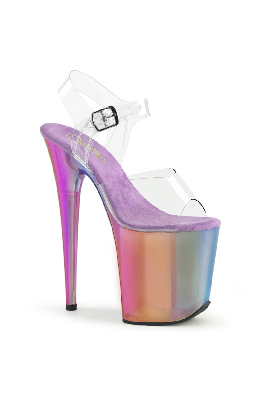 8″” (200mm) Heel, 4″” (100mm) Platform Ankle Strap Sandal Featuring Rainbow Misty Tinted Platform Bottom
