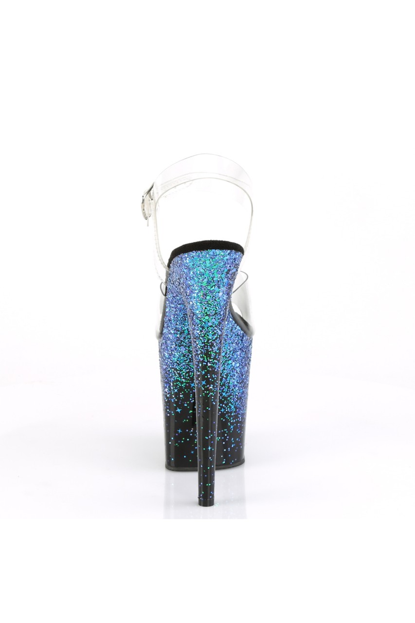 8″” (200mm) Heel, 4″” (100mm) Plarform Ankle Strap Sandal w/ Holographic Gradient Effect on the Platform Bottom