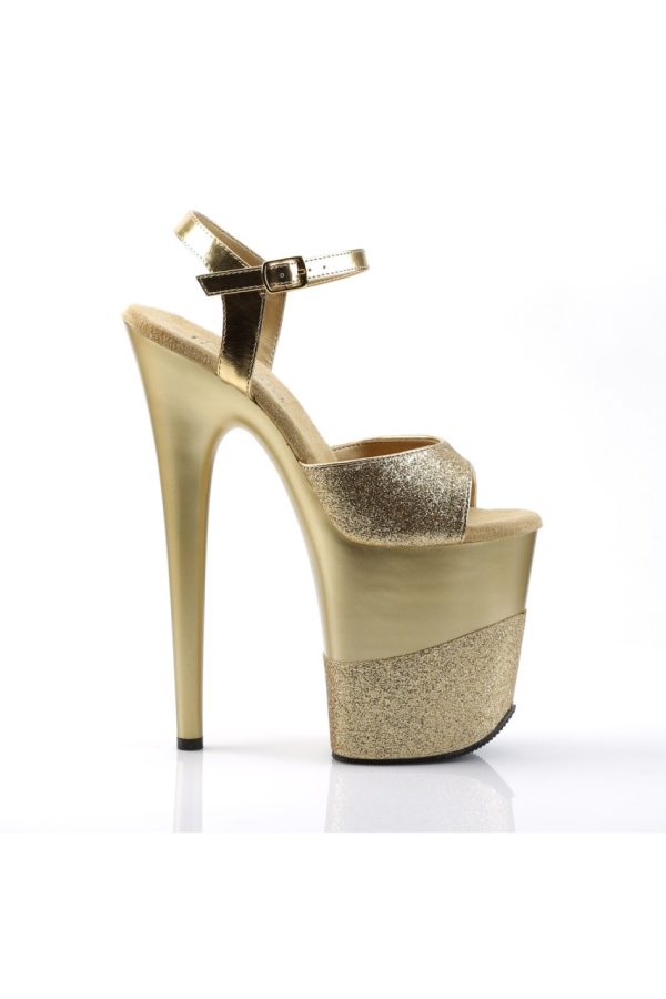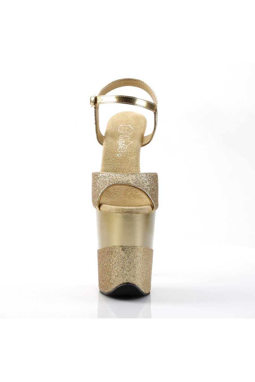 8″” (20.3cm) Stiletto Heel, 4″” (10.2cm) Platform Ankle Strap Sandal Featuring Half Glittered Platform
