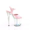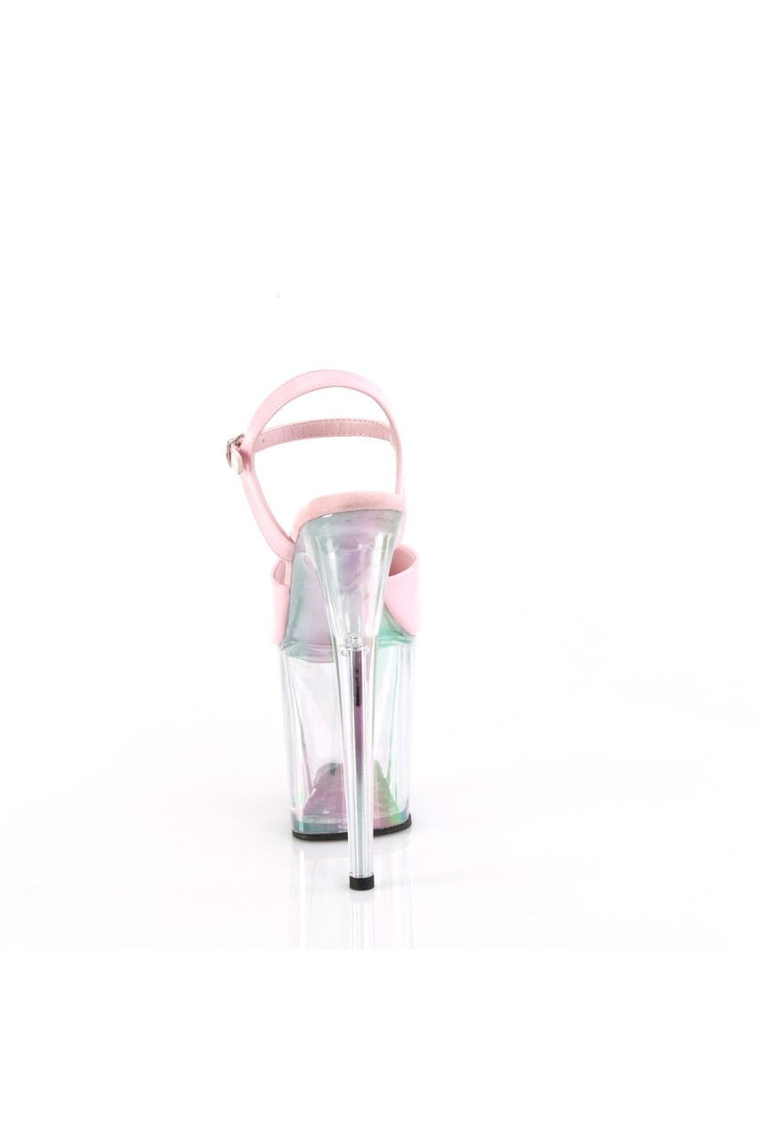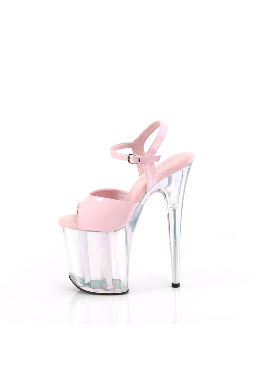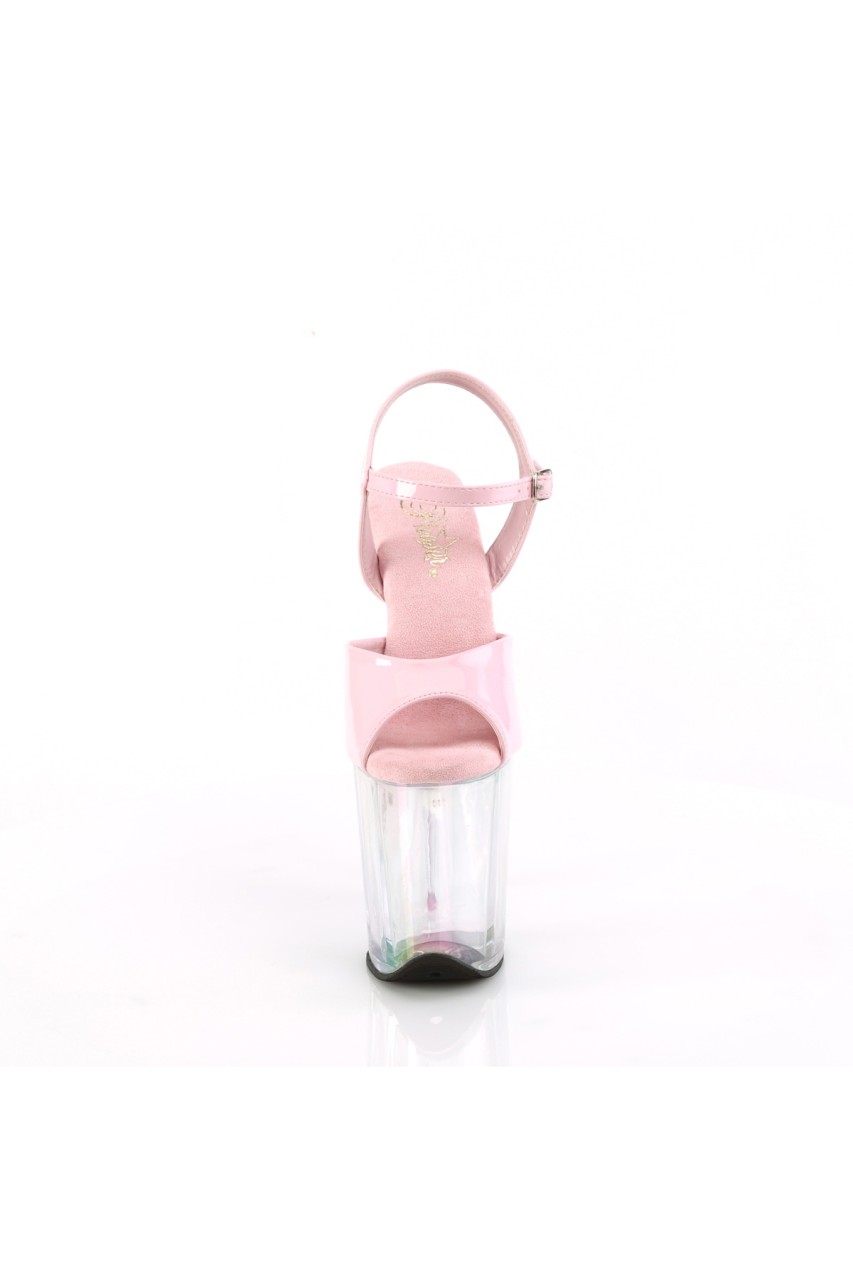 8″” (200mm) Heel, 4″” (100mm) Platform Ankle Strap Sandal Featuring Holographic Tinted Platform Bottom