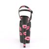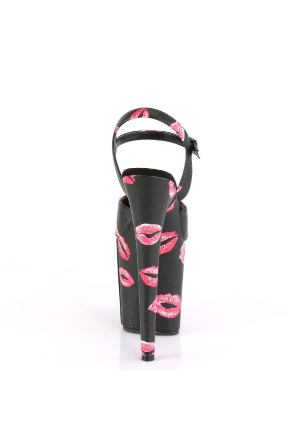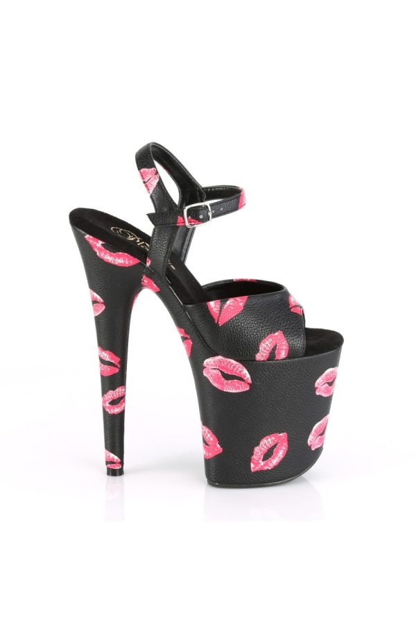 8″” (200mm) Heel, 4″” (100mm) Platform Ankle Strap Sandal Featuring Matching Upper & Bottom w/ Lip Print