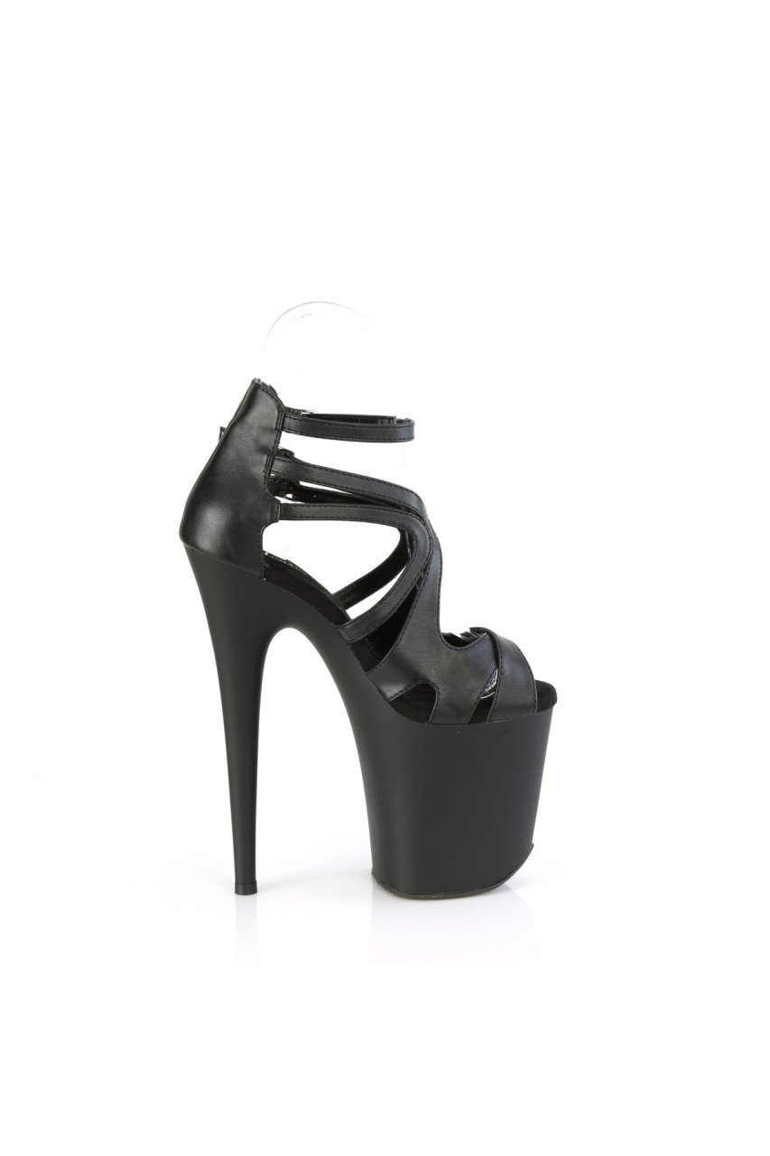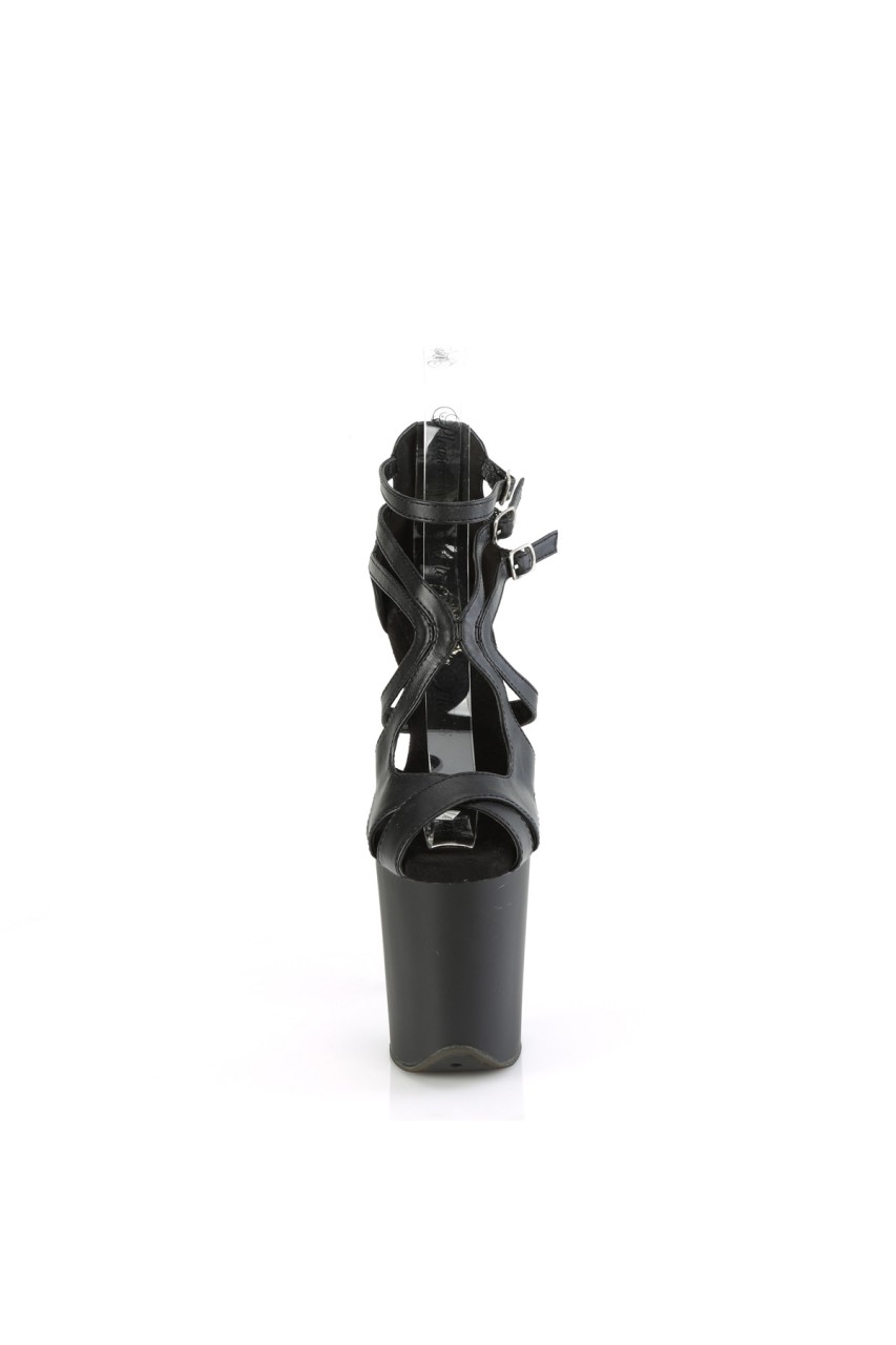 8″” (200mm) Heel, 4″” (100mm) Platform Strappy Peep Toe Close Back Triple Ankle Buckle Strap Sandal