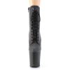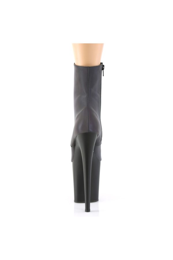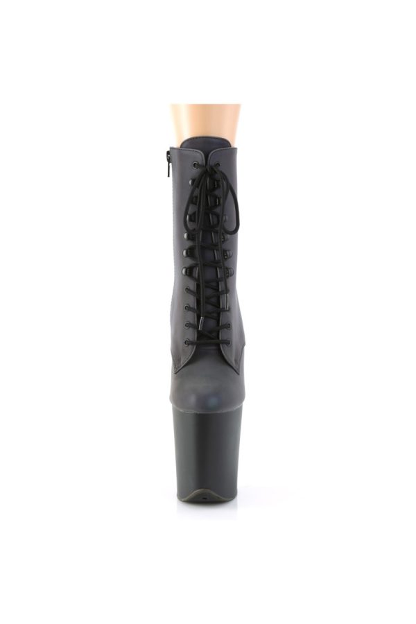 8″” (200mm) Heel, 4″” (100mm) Platform Lace-Up Front Ankle Boot Featuring Reflective Upper, Inner Side Zip Closure