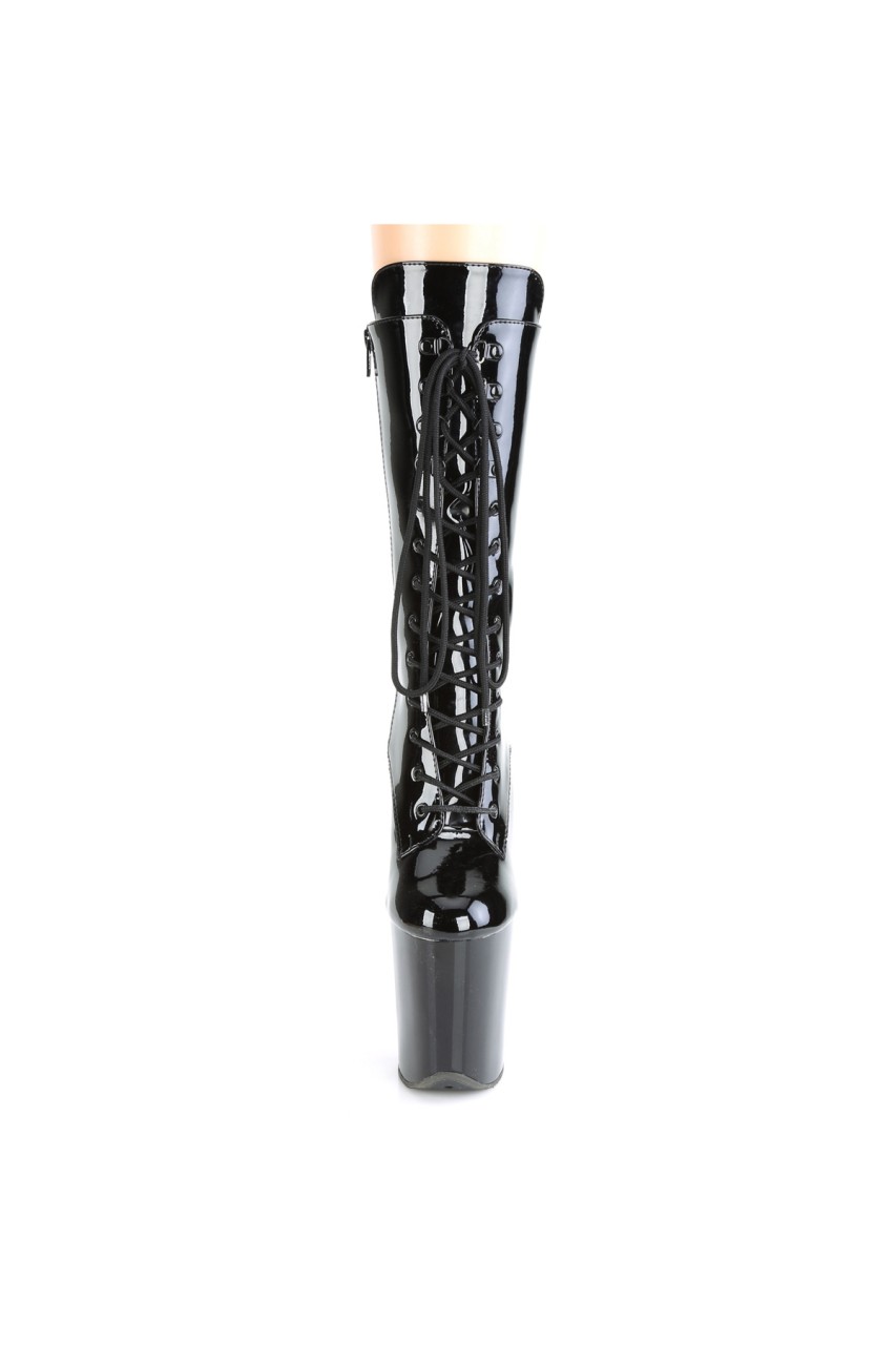 8″” (200mm) Heel, 4″” (100mm) Platform Lace-Up Front Mid Calf Boot, Inner Side Zip Closure