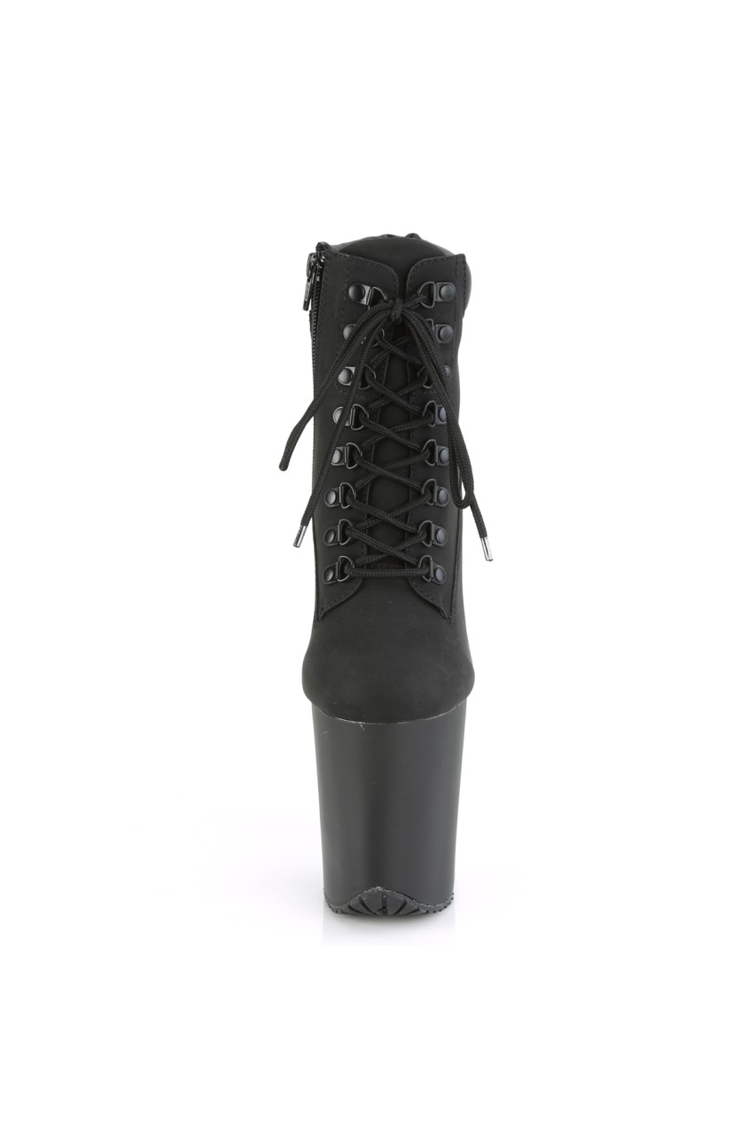 8″” (200mm) Heel, 4″” (100mm) Platform Lace-Up Front Bootie Featuring Padded Collar & Rubber Lug Outsole, Inner Side Zip Closure