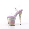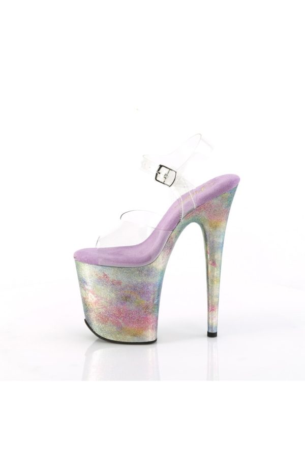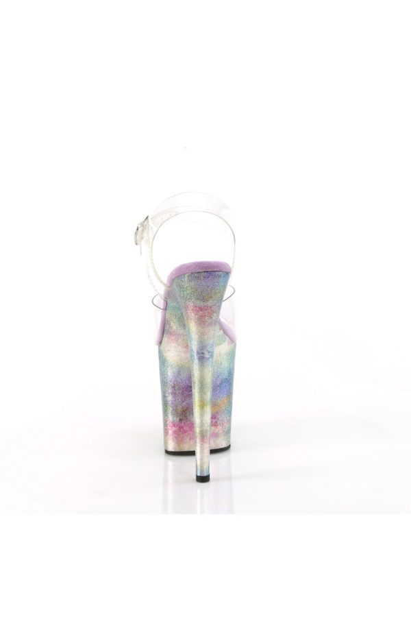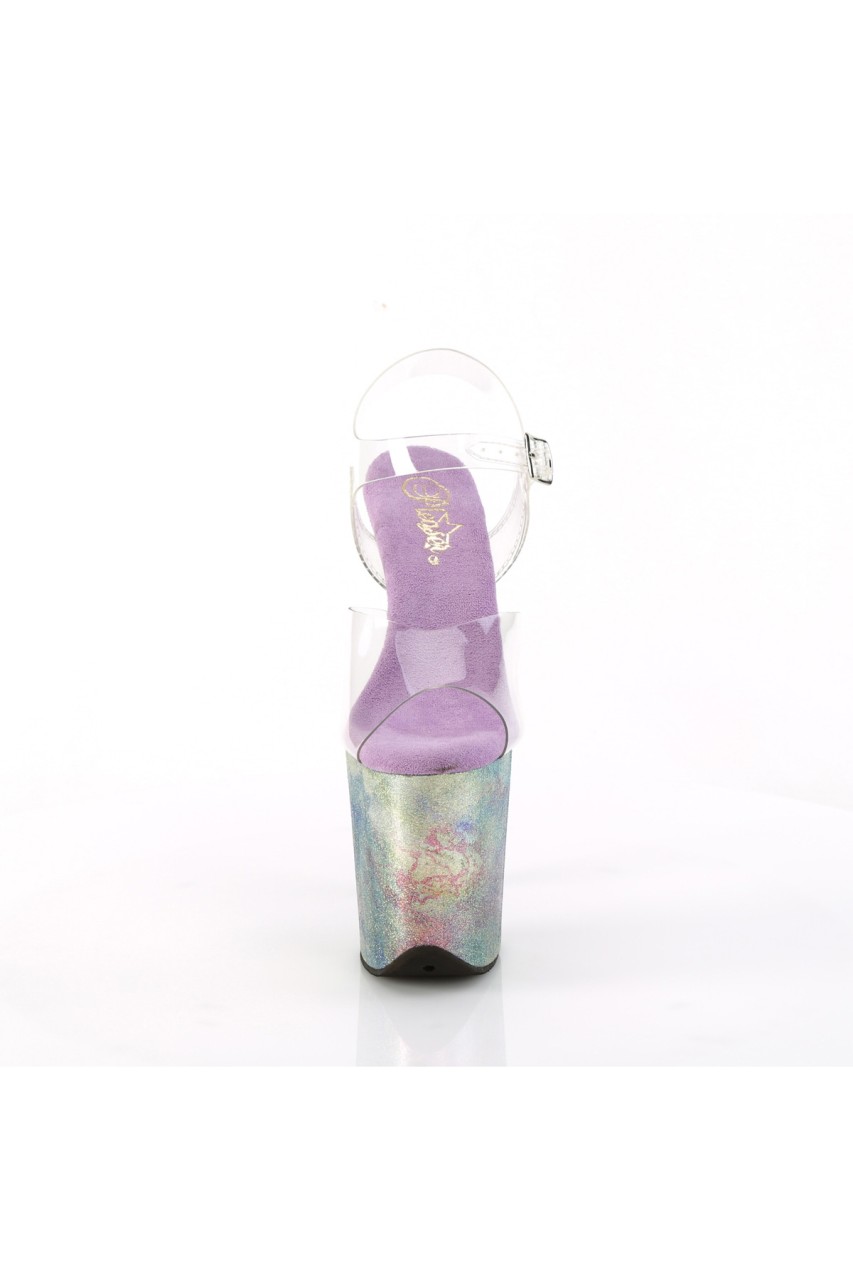 8″” (200mm) Heel, 4″” (100mm) Platform Ankle Strap Sandal Featuring Glittery Metallic Nebula Print Design on the Platform Bottom