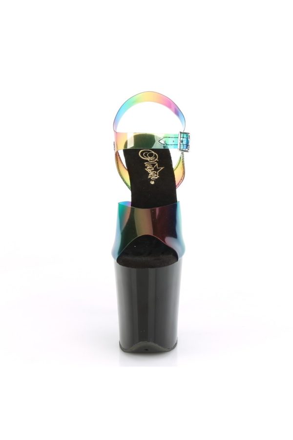 8″” (200mm) Heel, 4″” (100mm) Platform Ankle Strap Sandal Featuring Rainbow Effect Upper