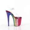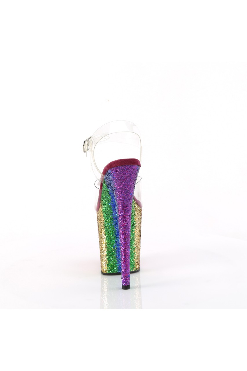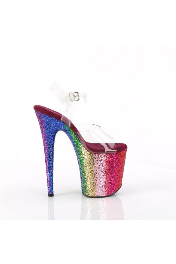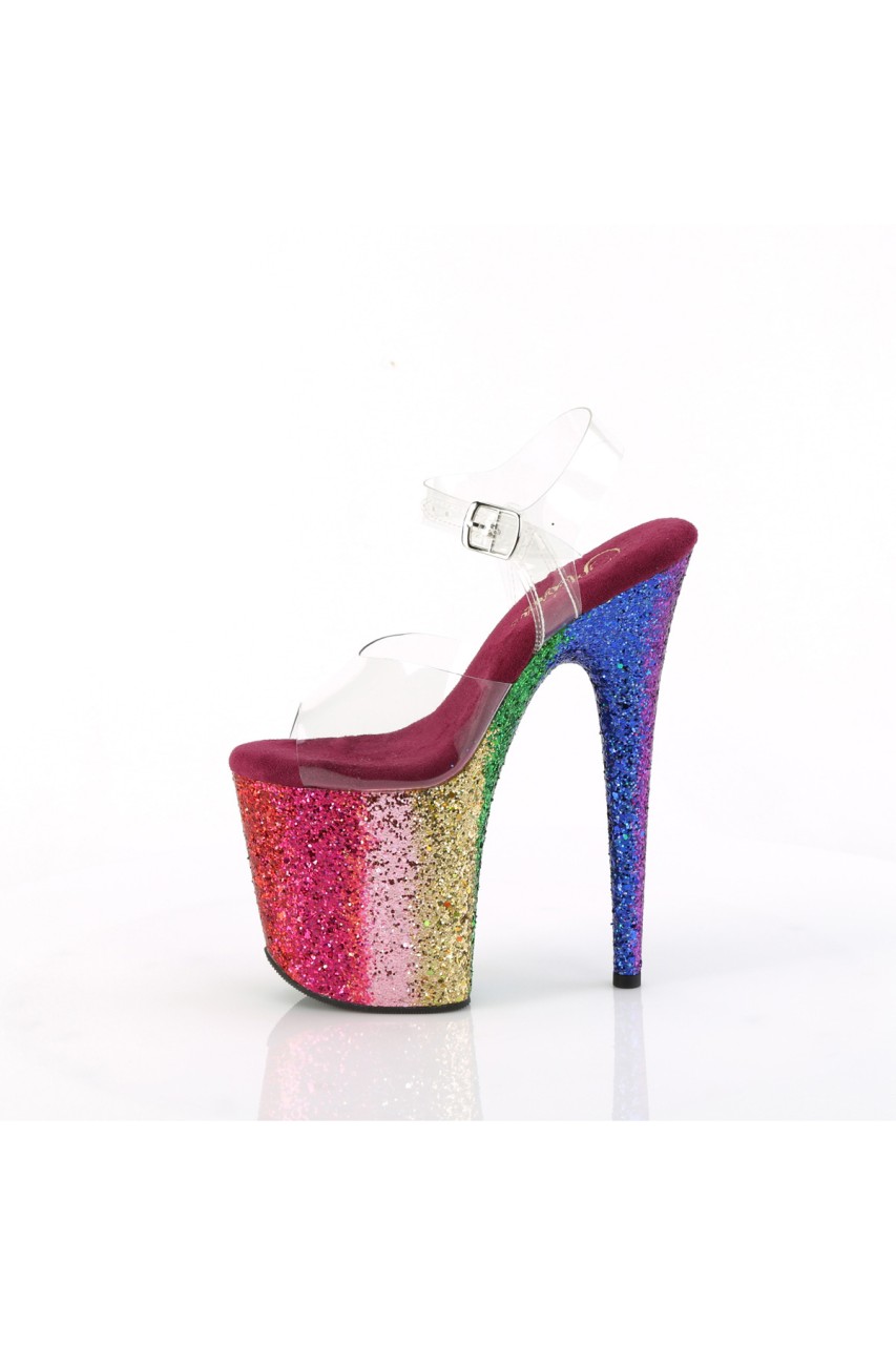 8″” (200mm) Heel, 4″” (100mm) Platform Ankle Strap Sandal Featuring Rainbow Glitter Platform Bottom