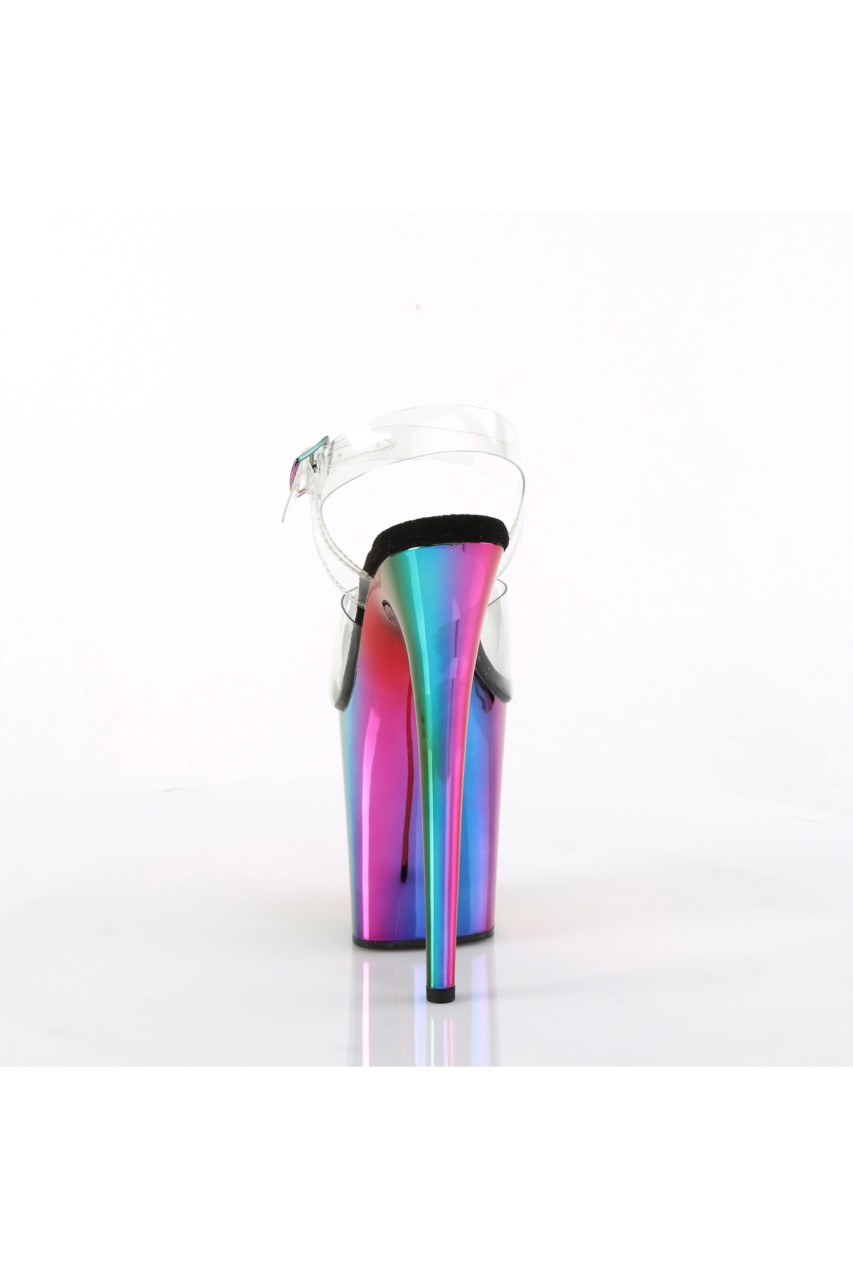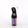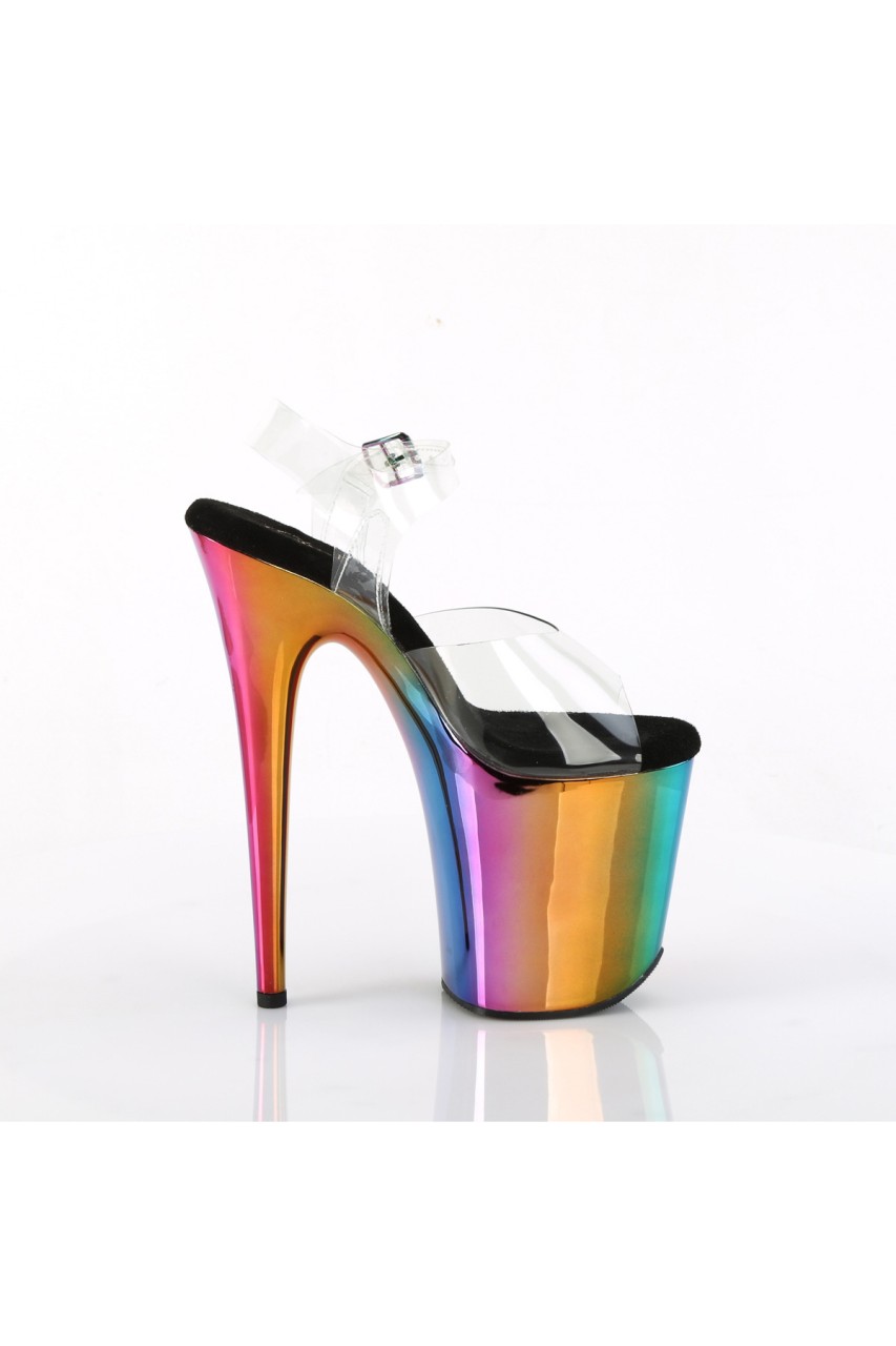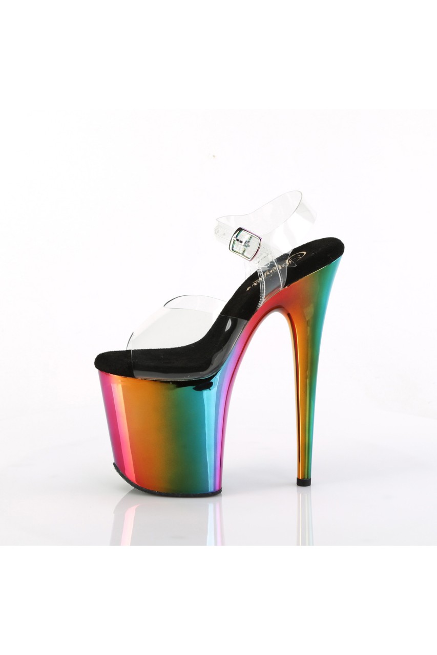8″” (200mm) Heel, 4″” (100mm) Platform Ankle Strap Sandal Featuring Rainbow Chrome Plated Platform Bottom