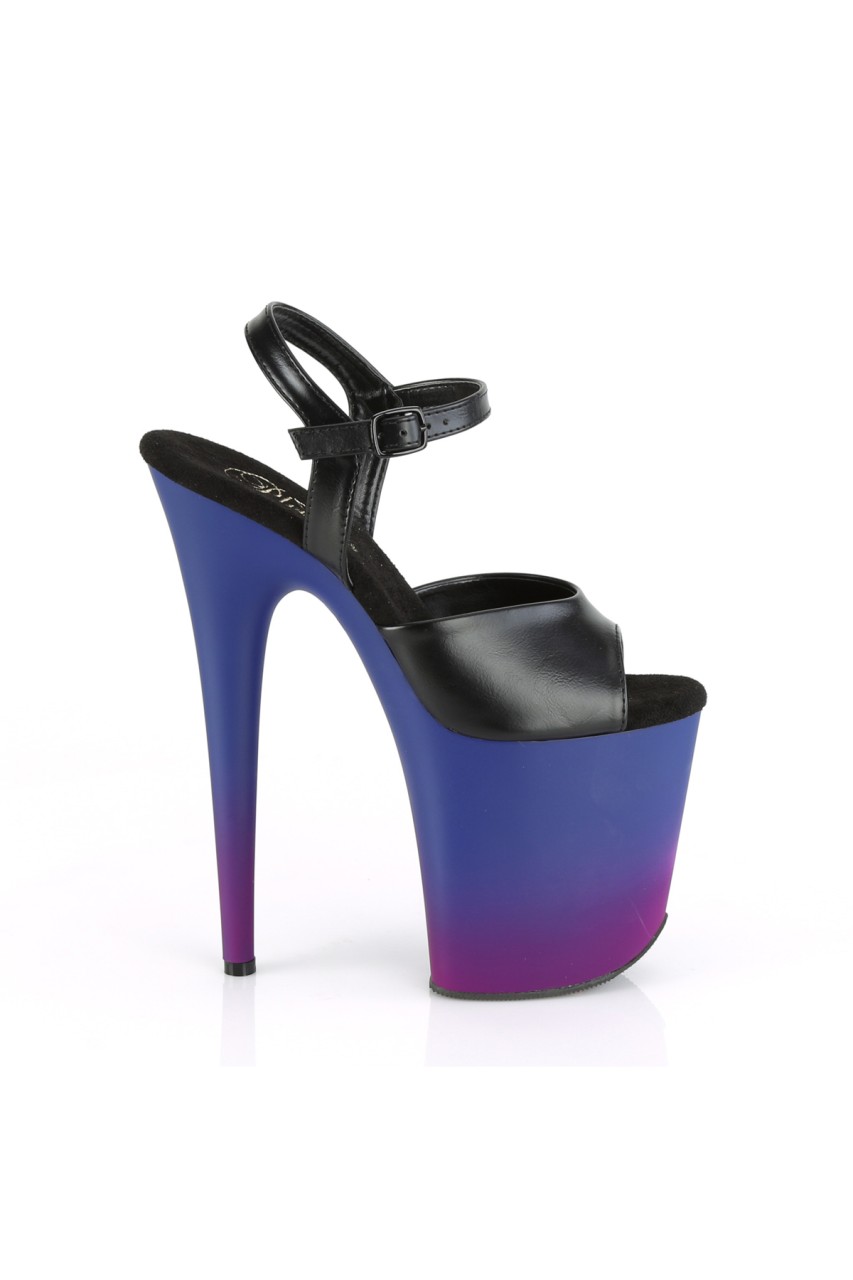 8″” (200mm) Heel, 4″” (100mm) Platform Ankle Strap Sandal Featuring Blue Purple Ombre Effect Platform Bottom