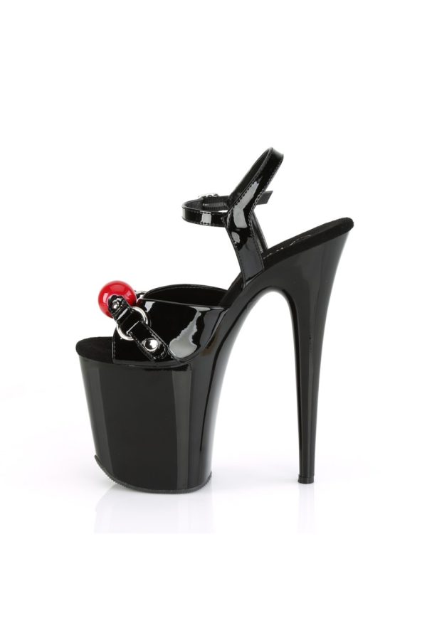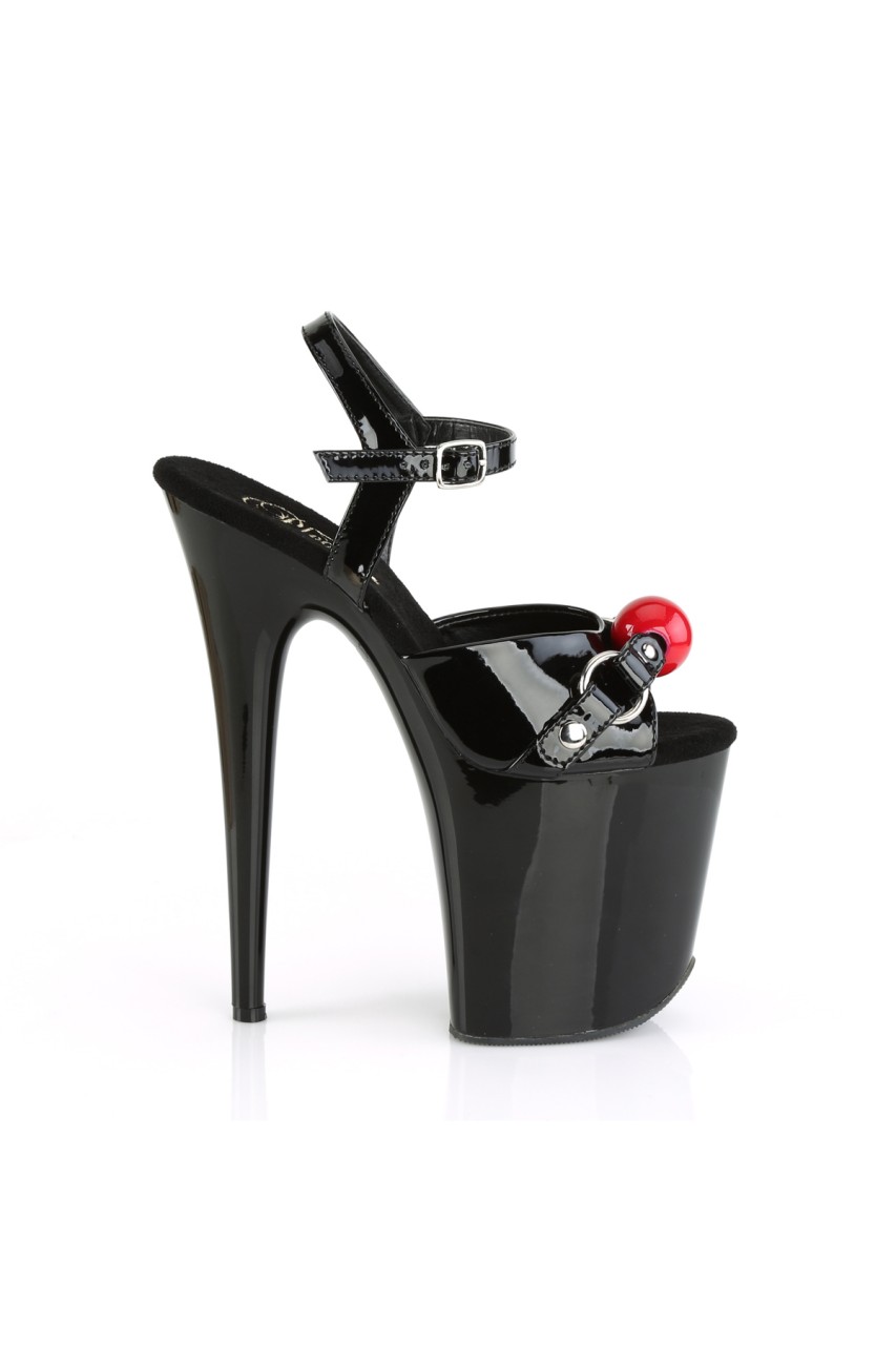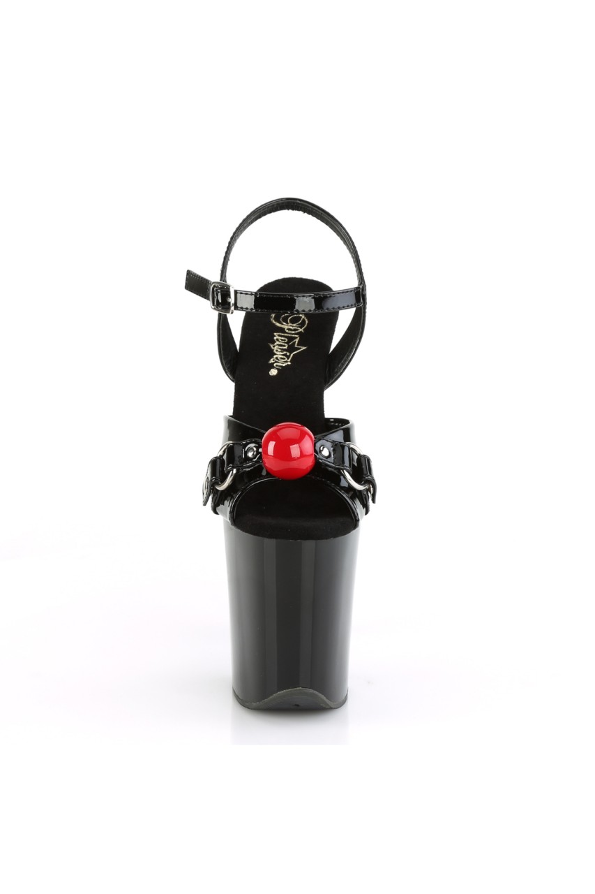 8″” (200mm) Heel, 4″” (100mm) Platform Ankle Strap Sandal w/ Interchangeable Gag Balls (Red & Fuchsia) on Vamp