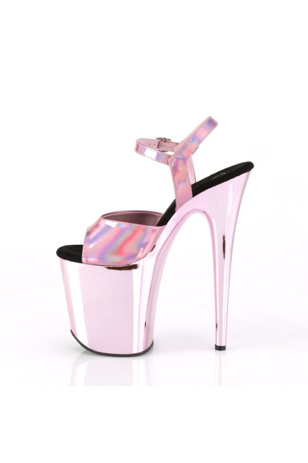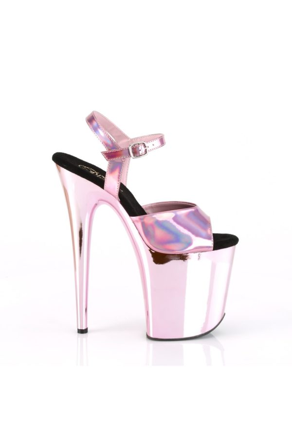 8″” (200mm) Heel, 4″” (100mm) Platform Ankle Strap Sandal w/ Chrome Plated Platform Bottom