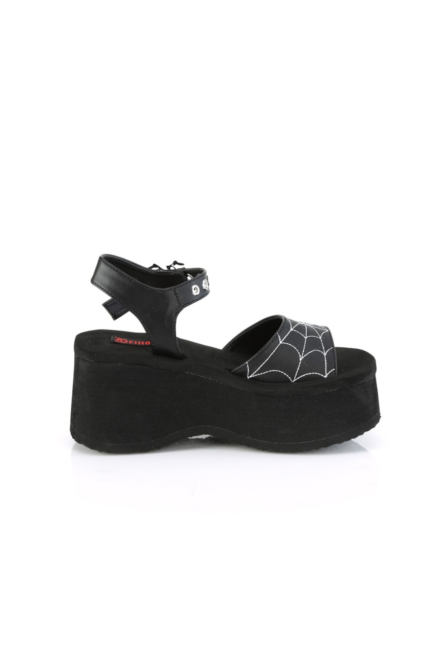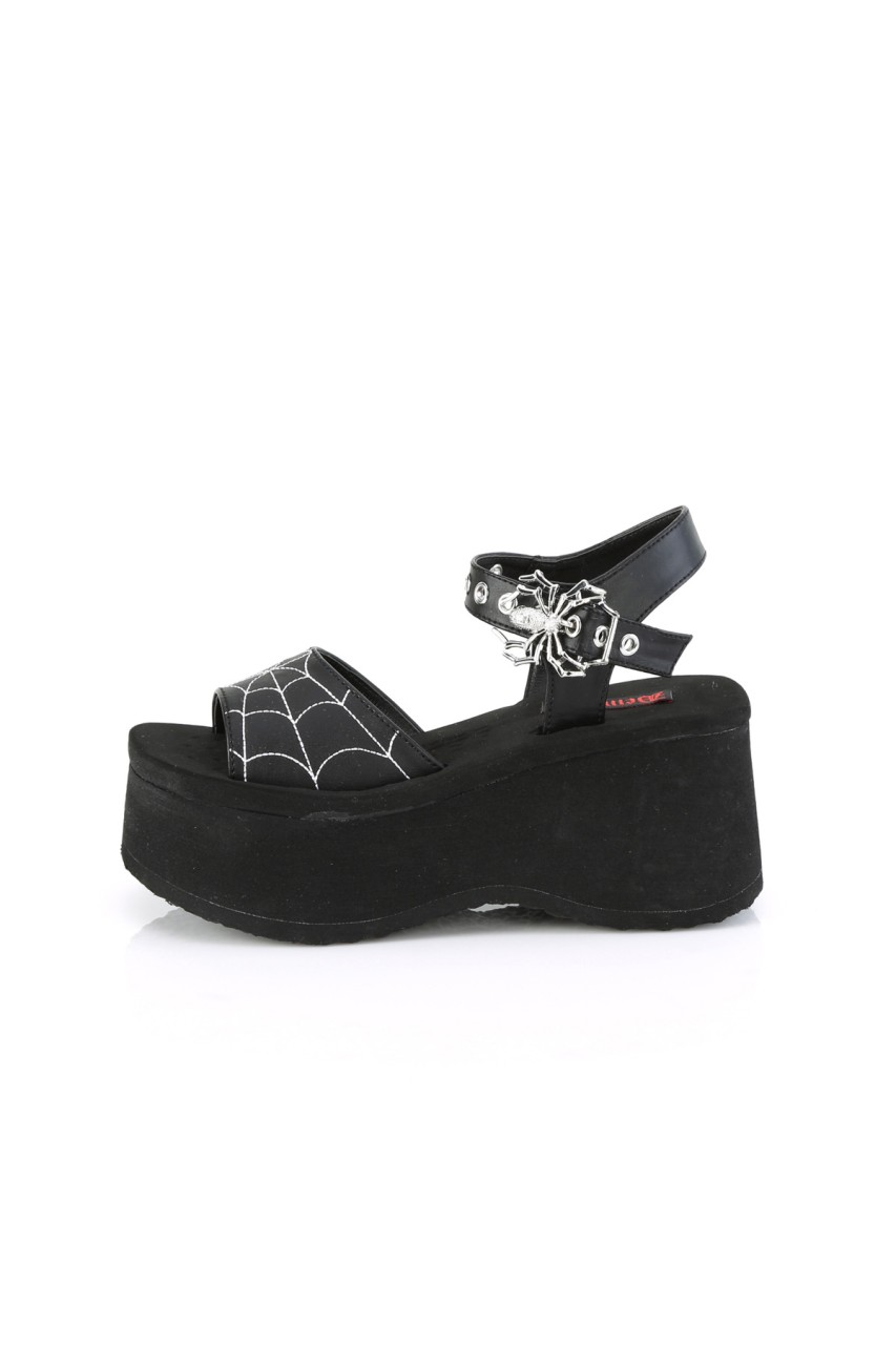 2 1/2″” (64 mm) Platform Ankle Strap Sandal, Featuring Silver-Tone Spider Shaped Buckle at Strap & Spider Web Embridoered Vamp