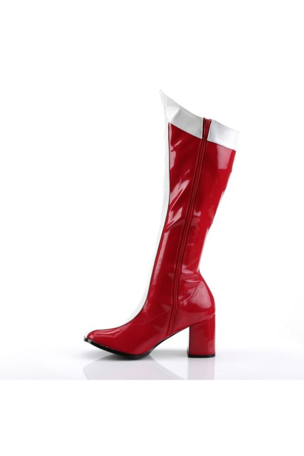 3″” (7.6cm) Block Heel Gogo Boot, Stretch Patent, Wonder Woman Design