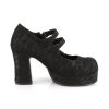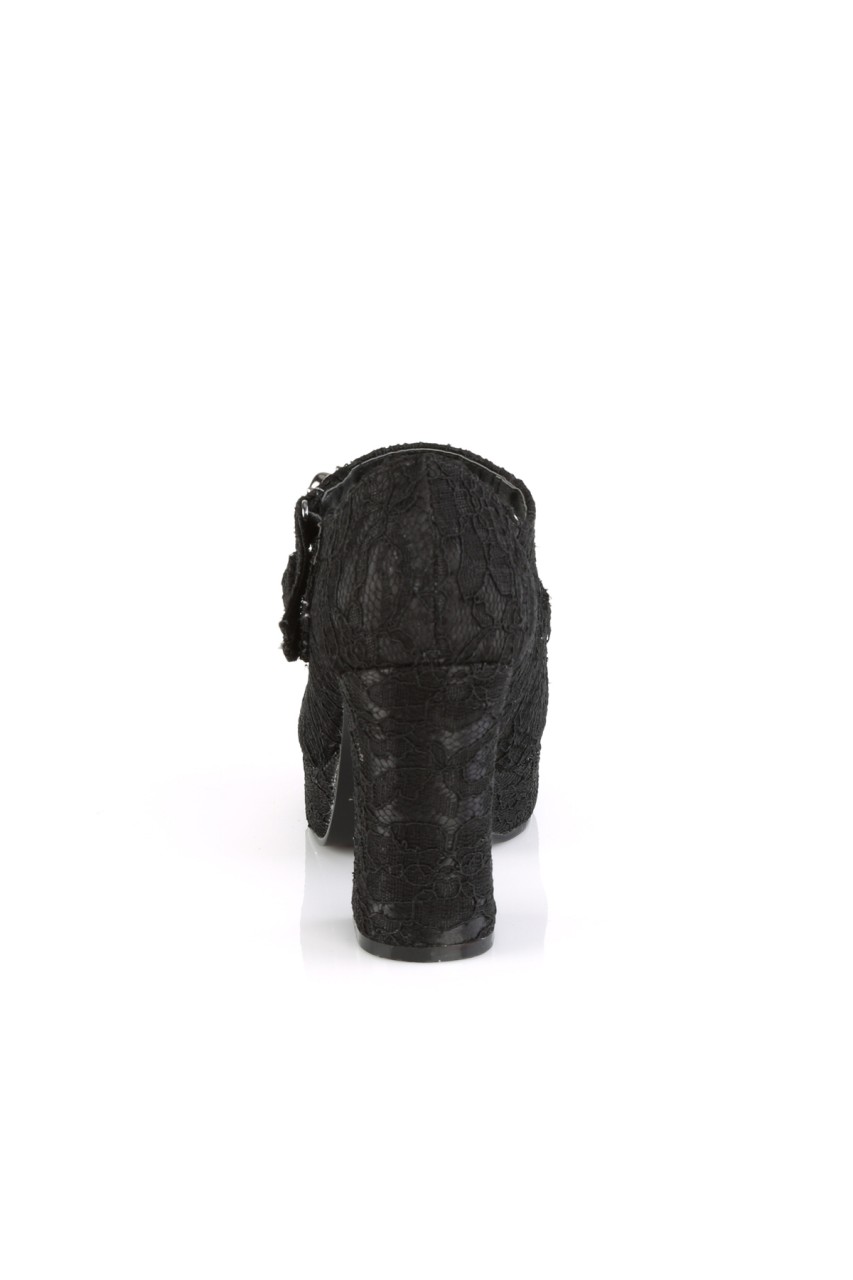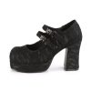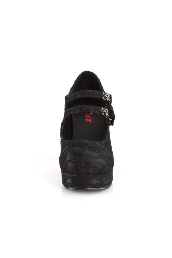 3 3/4″” (95mm) Heel, 1 1/4″” (32mm) Platform Double Hook N’ Loop Strap Maryjane w/ Skull & Cross Bone Metal Ornaments