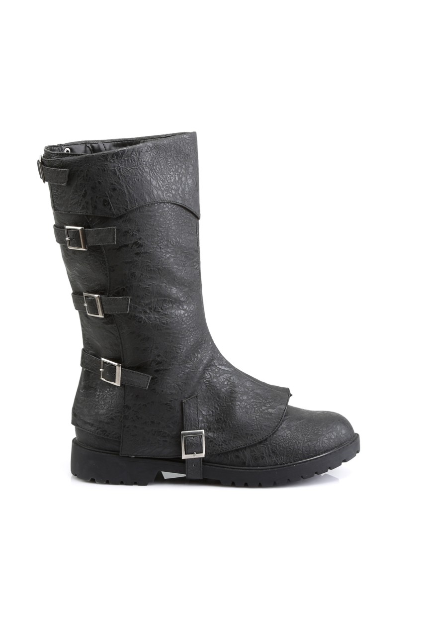 1 1/2″” (3.8cm) Flat Heel Men’s Buckled Strap Knee High Cuffed Boot w/ Detachable Shaft & Inner Zip Closure