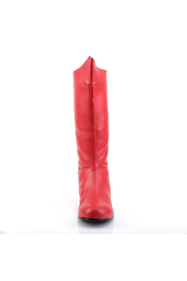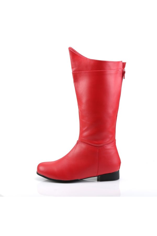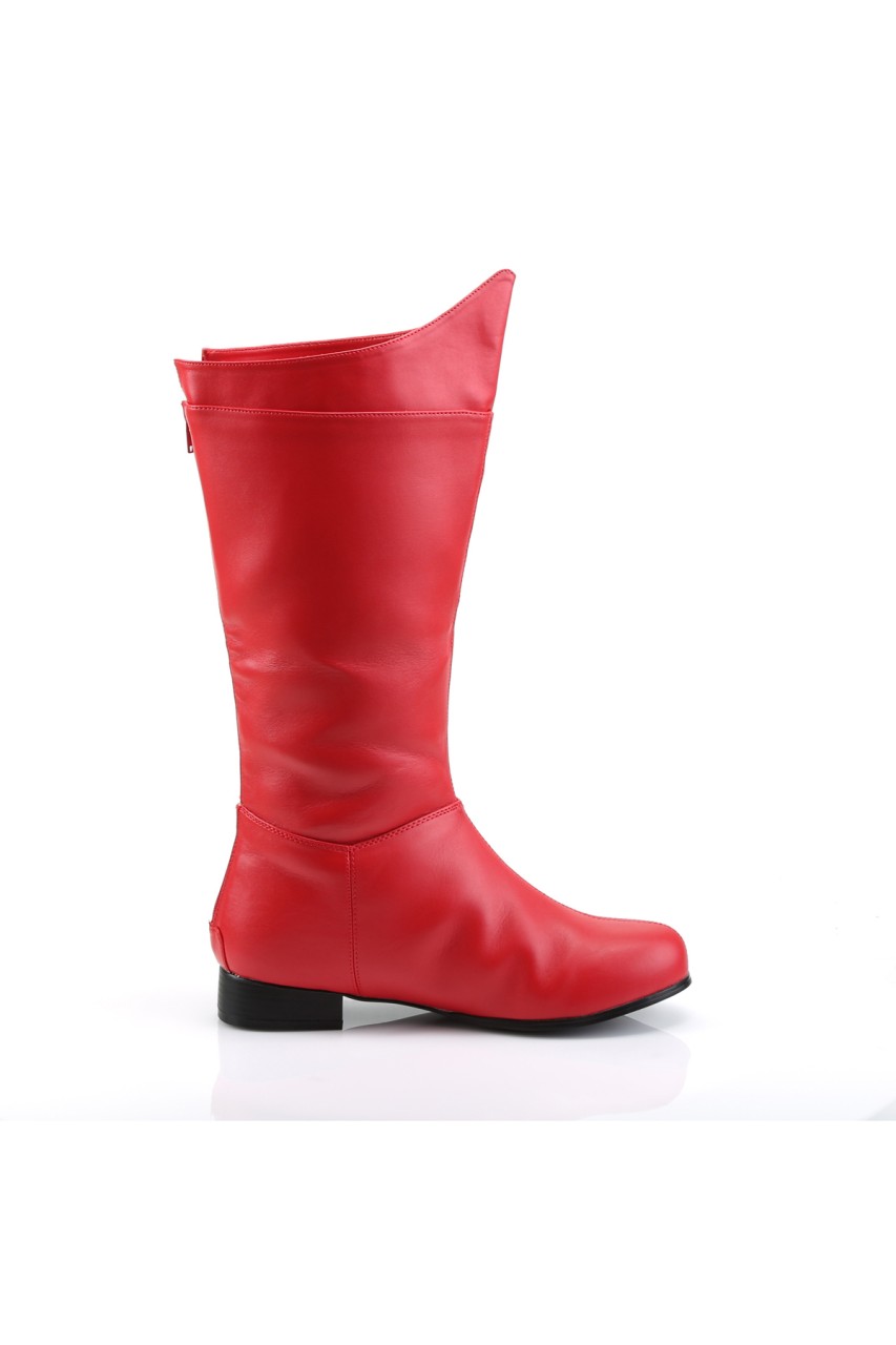 1″” (2.5cm) Flat Heel Men’s Pull-on Super Hero Boot, Red Faux Leather, Full Back Zip Closure