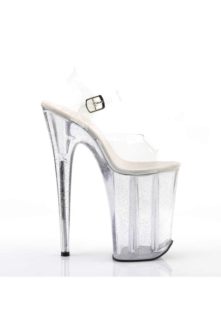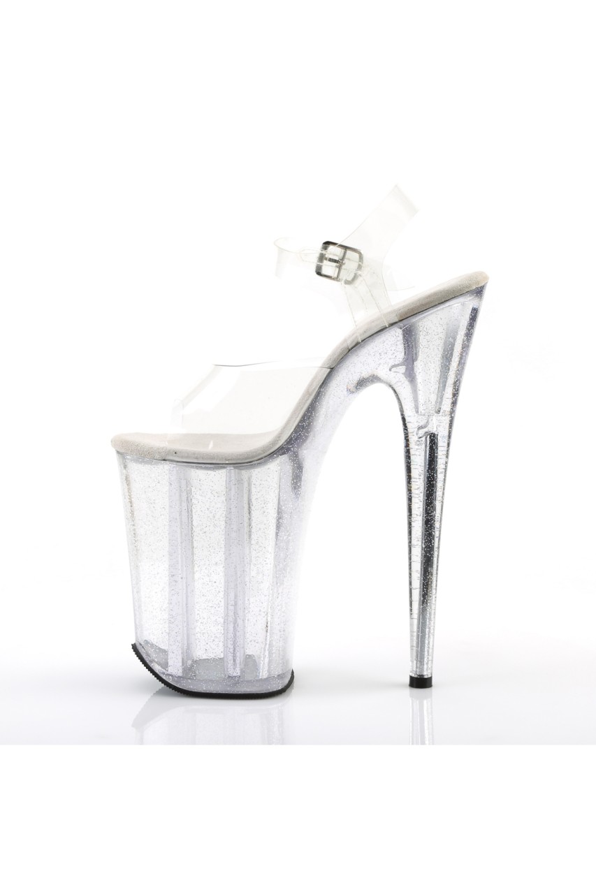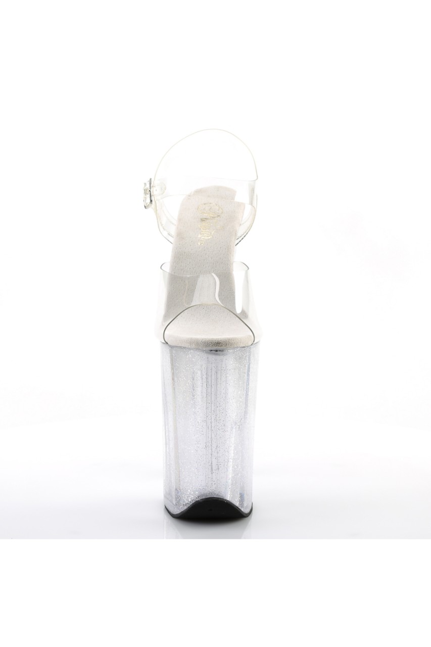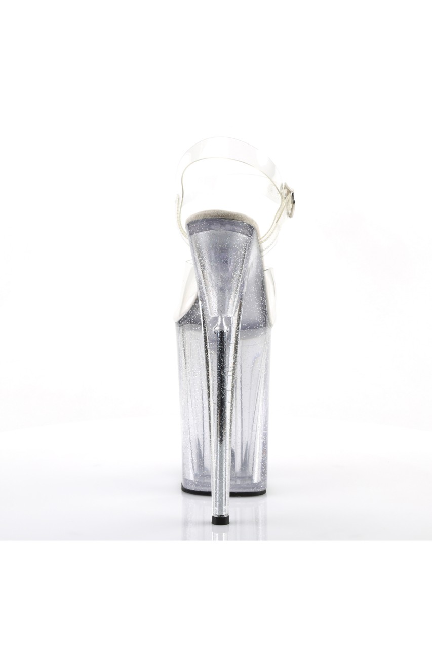 9″” (22.9cm) Heel, 5 1/4″” (13.3cm) Platform Ankle Strap Sandal Featuring Mini Iridescent Glitter on the Entire Platform