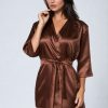 A classic dressing gown made from delicate satin. Features 3/4 sleeves and a waist belt. Aria arrives packaged in her own Irall box with lovely matching tissue paper.