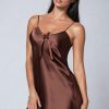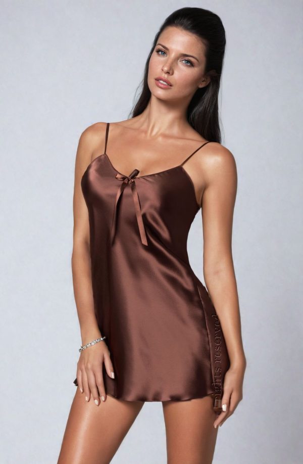 A charming classic chemise made with delicate satin. There is a satin bow feature at the top of the chemise. Includes thin adjustable shoulder straps. Aria arrives packaged in her own Irall box with lovely matching tissue paper.