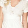 An elegant nightdress made of delicate viscose. The front and sleeves are decorated with a soft touch elastic lace. The bust is perfectly supported thanks to a special insert which further emphasizes its shape. The design of the nightdress perfectly covers up the imperfections of the figure. An additional charm is given by a satin bow on the front. The product is packed in an elegant box and a delicate tissue inside making it perfect as a gift or special treat. Knee-length at a height of 164 cm. Available in a choice of colours please see the ‘Related Products’ tab below for further details.