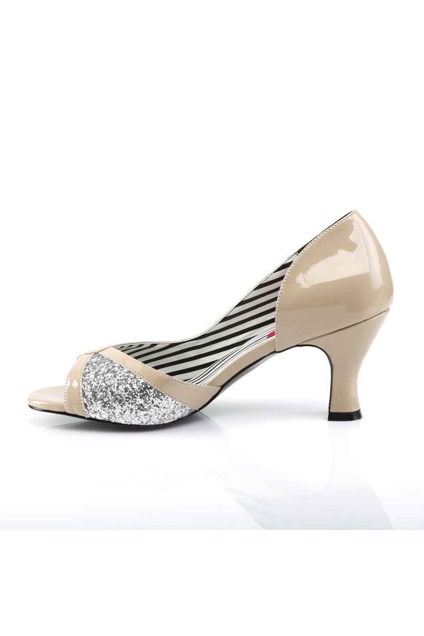 3″” (7.6cm) Heel Peep Toe D’Orsay Pump Cut with Glitter on an Asymmetric Upper