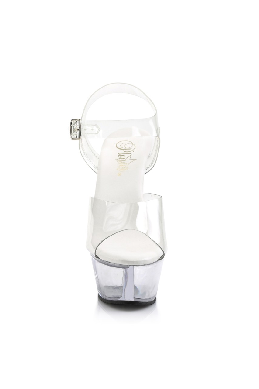 6″” (15.2cm) Heel, 1 3/4″” (4.5cm) Platform Ankle Strap Peep Toe Sandal Featuring Vegan Leather Insole