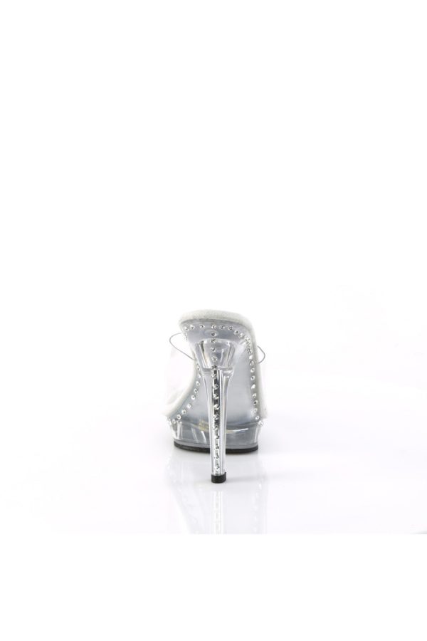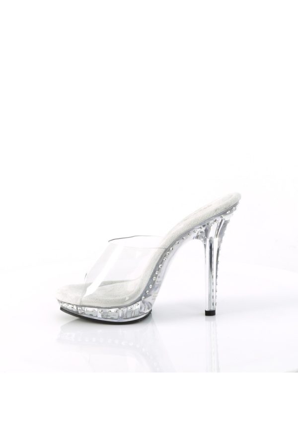 5″” (12.7cm) Heel, 3/4″” (1.9cm) Platform Slide Featuring one Line Rhinestones on the Heel and Platform Bottom