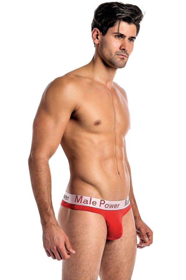 Low rise thong, comfort pouch, satin printed branded waistband, 1 inch back.95% Modal 5% Spandex