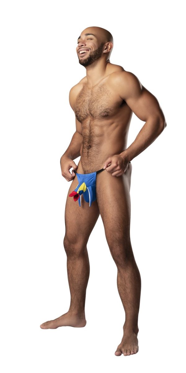 From the Novelty collection by Male Power, the Dapper Dick thong is a classic full cut thong with a mini tux and tails outfit for your privates. An elasticized C-ring opening and mini bow tie is included.