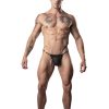 From the Show Stopper collection by Male Power, the Classic Posing Strap g-string with plush elastic trim adorned with ornamental tunnel beading on both sides of the contoured pouch. Full rear exposure. 90% Polymide, 10% Spandex