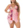 This flirty and seductive babydoll is made from a sheer mesh floral print, featuring adjustable straps and a charming front tie detail. With a loose, yet flattering silhouette and completed with a matching thong.