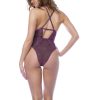 A flattering silhouette with subtle touches of shine. Embroidered and solid mesh panels, adjustable straps, medium coverage and adjustable crotch fastening.