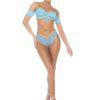 This seductive and playful Arabian Night fantasy princess two-piece set features a top with adjustable straps, off-shoulder details, gold trims, and a matching lace bottom.
