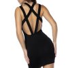 Show off your best assets in this dress with deep neckline and open back with a strappy design.