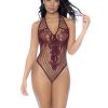 A versatile fishnet bodysuit that can be styled with either a halter or crossed neckline. It features front floral details and an alluring lace-up design at the back.