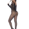 A classic long-sleeved fishnet bodystocking, reimagined with shimmering rhinestones to create a luxurious, dazzling look.