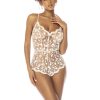 Classic sleep romper featured in a delicate embroidered cotton-blend lace, designed in a semi-fitted silhouette with adjustable straps and a snap crotch closure for added convenience.