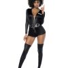 Indulge in your dominance with this sexy police costume. Long sleeved mini jumpsuit in wet-look fabric with front zipper closure and handcuffs.