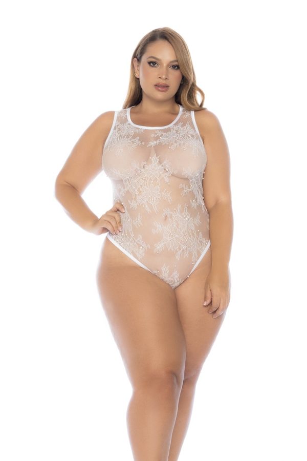 This timeless teddy is crafted from delicate white lace, offering an elegant yet seductive look. The piece features a stunning full back lace-up detail that adds an alluring touch, while the snap crotch closure ensures both convenience and comfort.