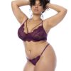 Rich hues of precious stones captured on your skin. Three-piece eyelash lace set featuring top with underwire and adjustable straps, garter belt, and matching thong.