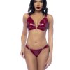 That’s why the lady is a VAMP!. Carmina is shamelessly dark and seductive. Push up bra with removable pads. There is a ribbon bow in the centre of the bust and the bra itself is in a deep red satin overlaid with intricate black lace. Bra straps are removable and they too feature a pretty black ribbon bow. Matching thong sold separately. Available in red and black.