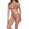 Chic two-piece swimsuit in a realistic crochet print. The top is designed with a front twist knot that forms a sweetheart neckline, paired with a matching ruched bottom with medium coverage and side ties.