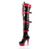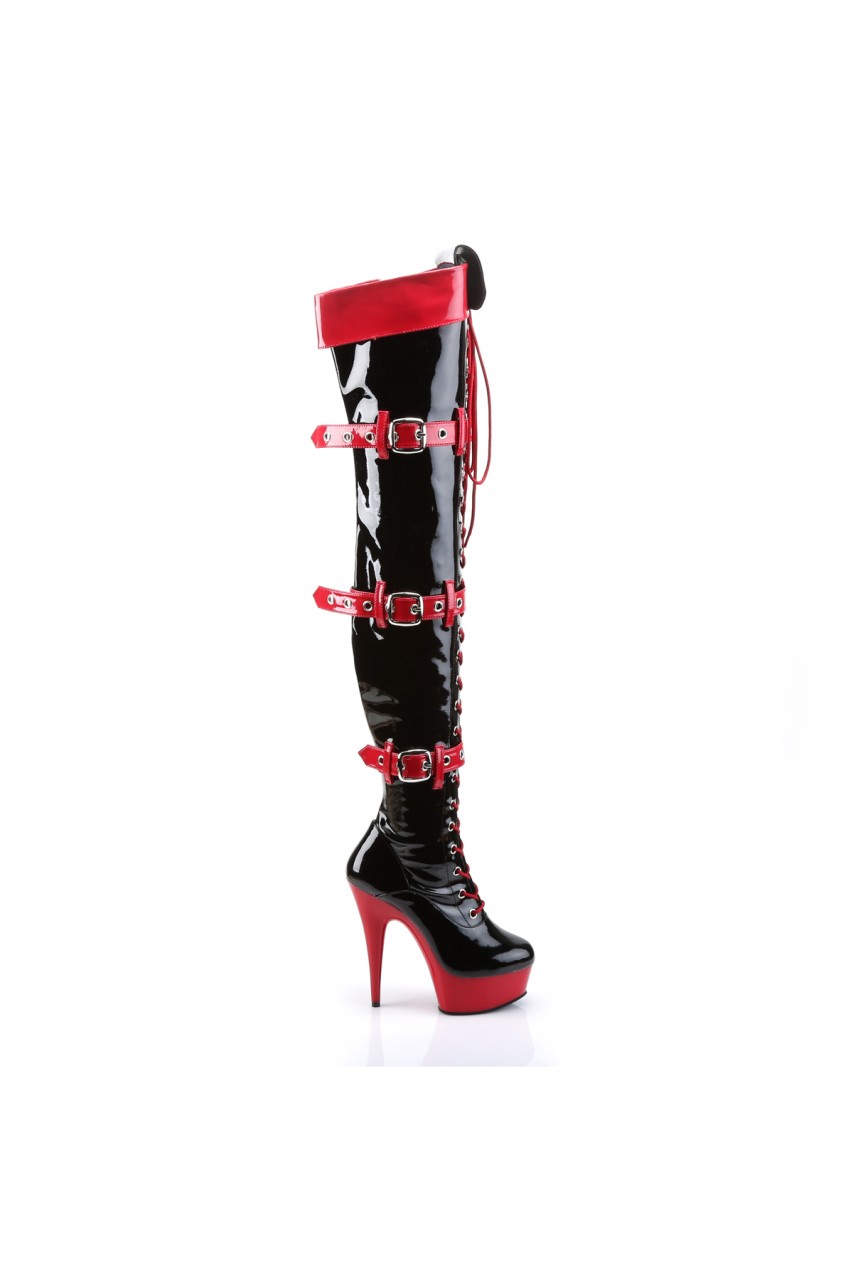 6″” (15.2cm) Heel, 1 3/4″” (4.4cm) Platform Lace-Up Triple Buckle Strap Stretch Thigh High Boot, Full Inner Side Zip Closure