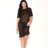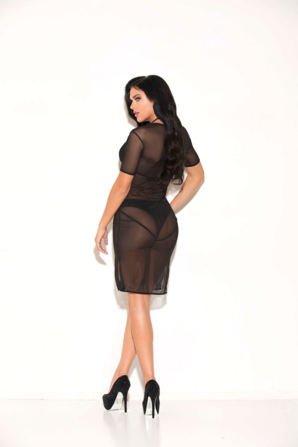 Short sleeve mesh dress with side slit.