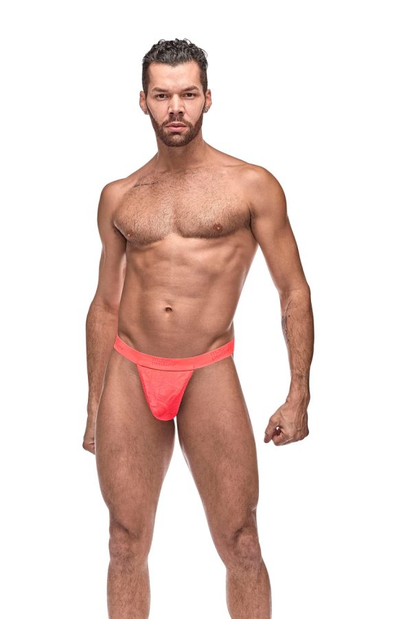 From the Impressions collection by Male Power, this style includes: A micro thong front, gstring back with v shaped fabric insert, embossed tone on tone logo’d waistband. Semi Sheer lightweight fabric with an embossed abstract swirl pattern Hand Wash Separately, Cold Water Line Dry, Do Not Bleach