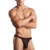Crocheted micro thong features comfort fit pouch, classic thong back, Male Power branded plush elastic waistband and plush elastic trim.
