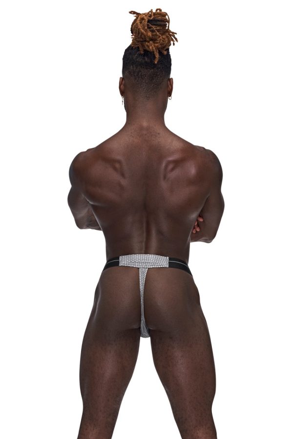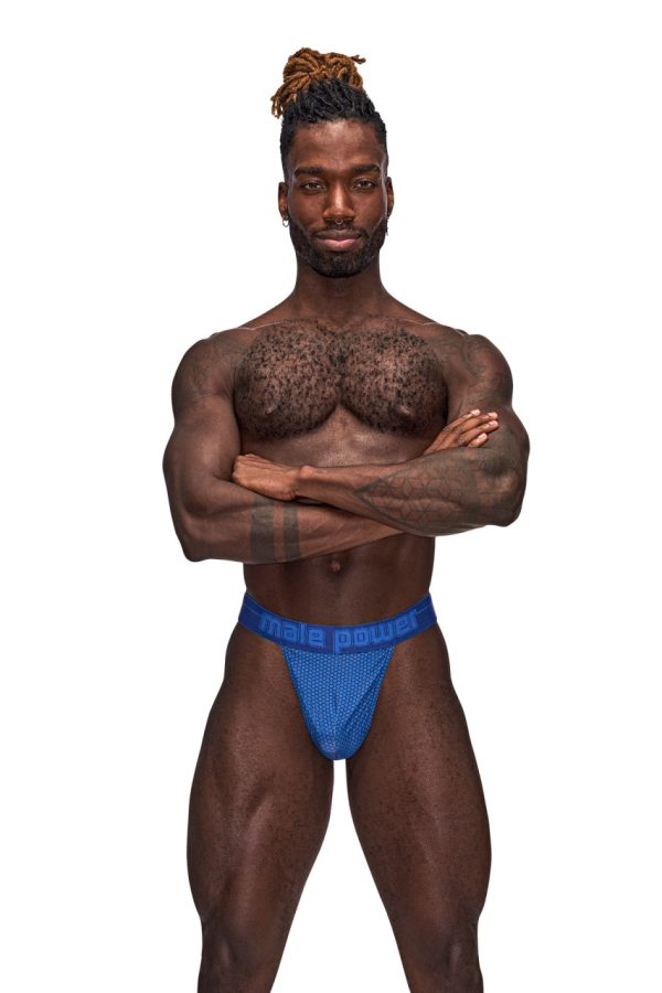 From the Sexagon collection by Male Power the Micro V Thong features a full front pouch for complete coverage, fabric insert in back of the plush branded printed waistband, 1 inch rear thong strap. Poly spandex hexagon print fabric with micro pin hole perforations for moisture wicking and cool breathability, plush branded elastic waistband. Hand wash separately, cold water, line dry, no bleach