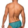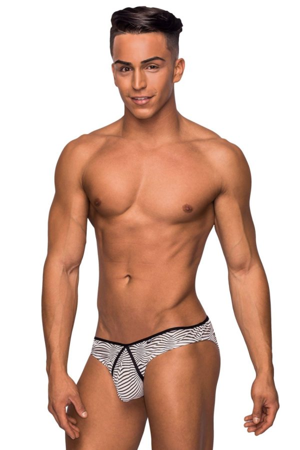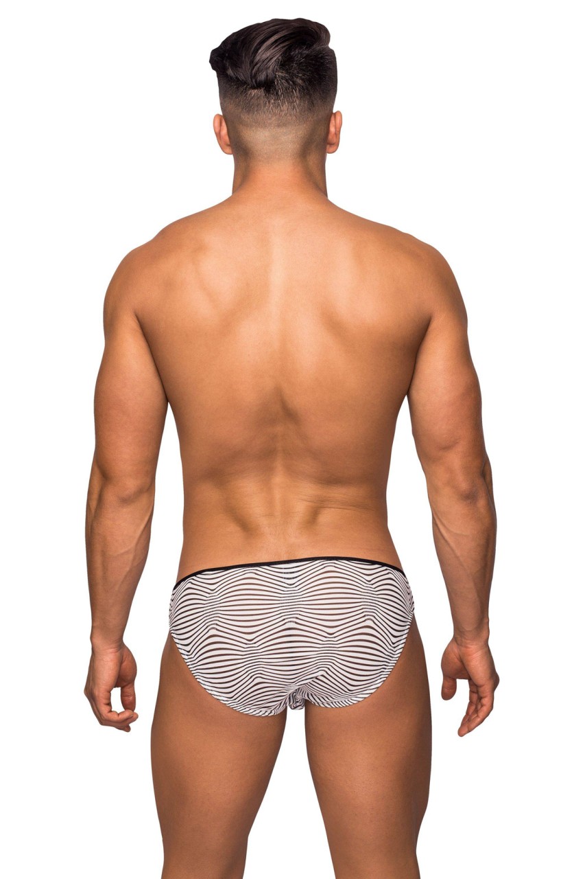 Mini bikini, ultra low cut waist, 1 inch sides, full coverage rear, enhancing nylon trim on waist and pouch
